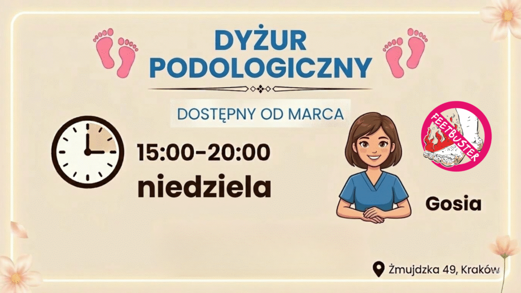 W FEETBUSTER słuchamy Waszych potrzeb. Wiemy, że życie w Krakowie pędzi, a znalezienie czasu na wizytę u specjalisty między pracą, domem a codziennymi obowiązkami bywa wyzwaniem. Wiemy też, że dolegliwości takie jak wrastający paznokieć czy bolesny odcisk potrafią odebrać radość z weekendowego spaceru.